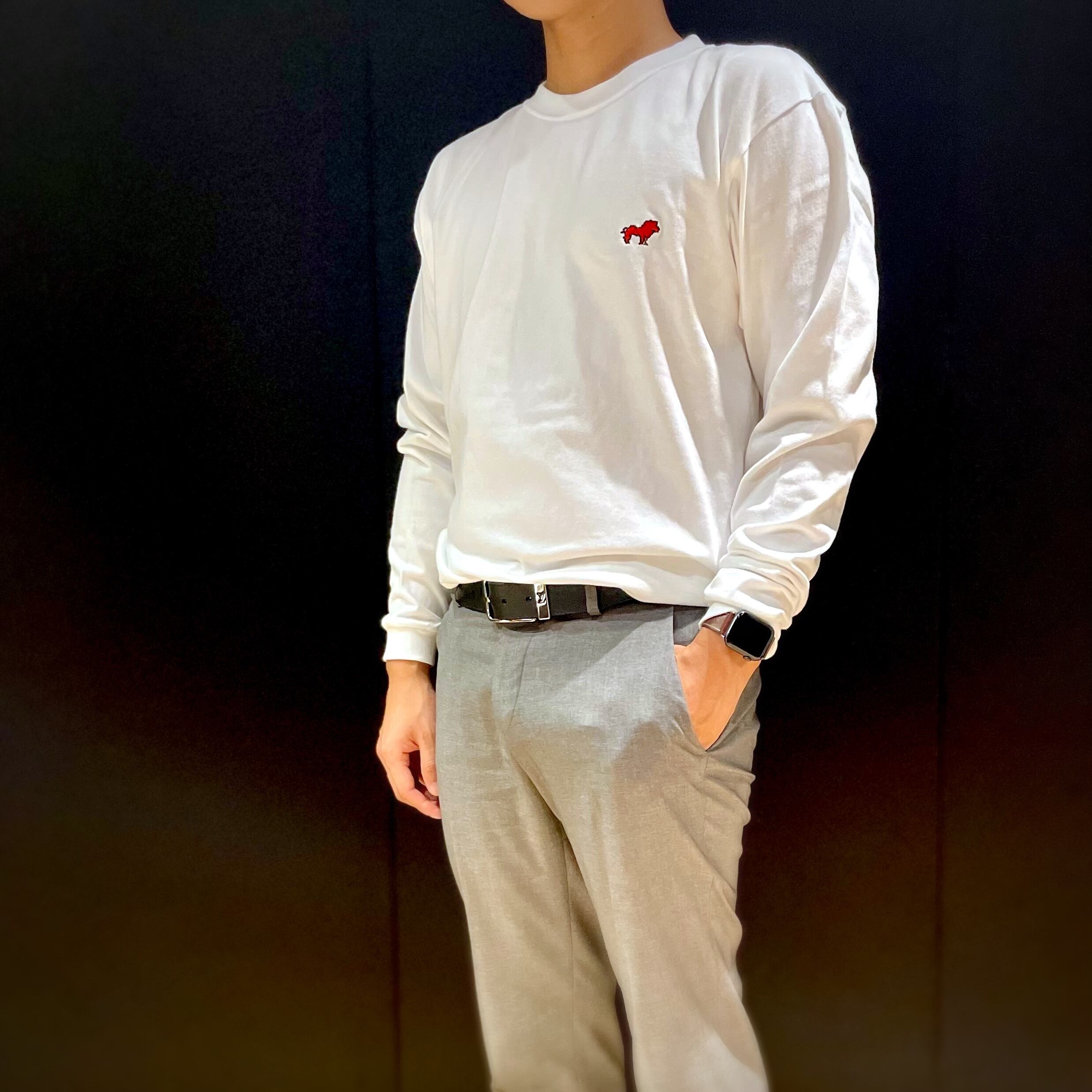ロゴを分解して組み合わせたLeo(ライオン)のワンポイント刺繍付き。